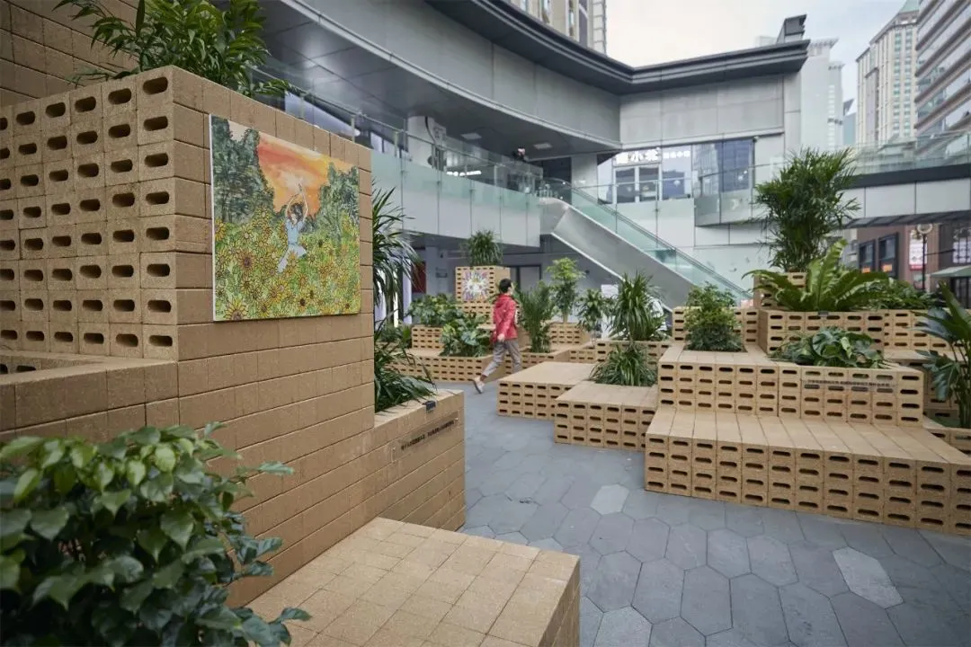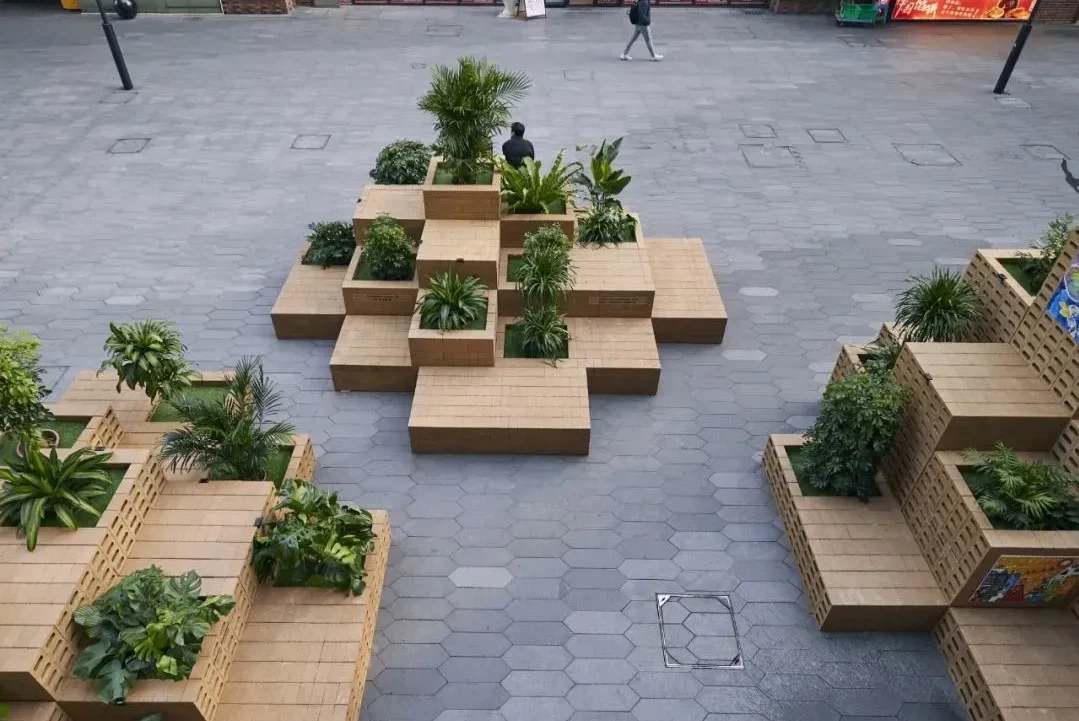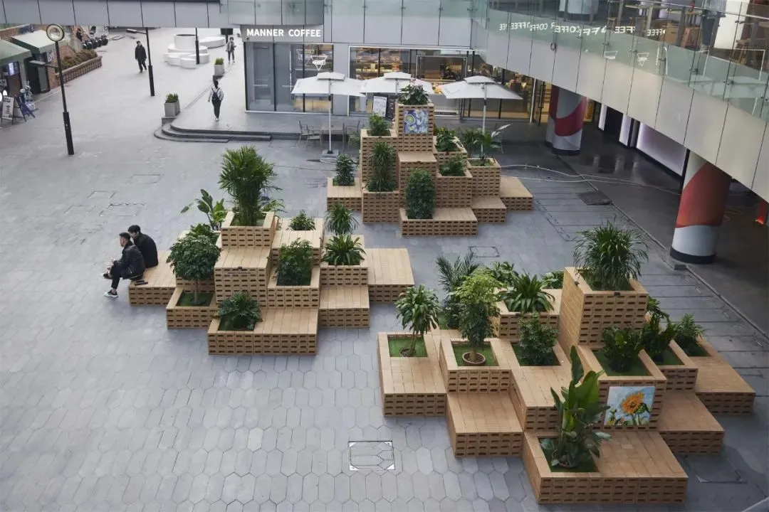 The project uses natural and environmentally friendly materials to combine art, green plants and neighborhood commerce to build a hill in the countryside and nature, symbolizing the arrival of spring, the growth of everything, and everything comes from nature.Three groups of “hills” with scattered heights combine tree pools, outdoor seats and art exhibitions for pedestrians to enjoy and rest, providing urban public spaces where everyone can gather freely and safely, and calling for a more friendly, healthy and environmentally friendly neighborhood atmosphere.