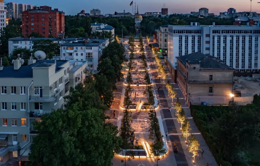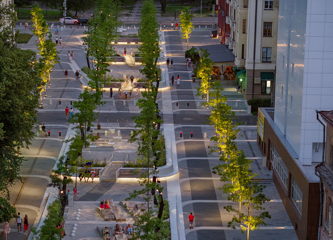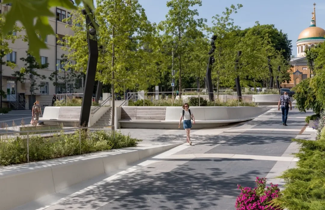 The goal of the project is to create a people-oriented, barrier-free space in the city, suitable for all social groups.In order to achieve this goal, a number of measures have been taken, such as organizing pedestrian movement at the same level, emphasizing the priority of pedestrians at intersections with automobile traffic, and seamless connection with the surrounding street network.The project also considers the requirements of social distance, through the design of space structure and outdoor furniture, to meet the needs of all walks of life, promote communication, communication and interaction between different age groups.